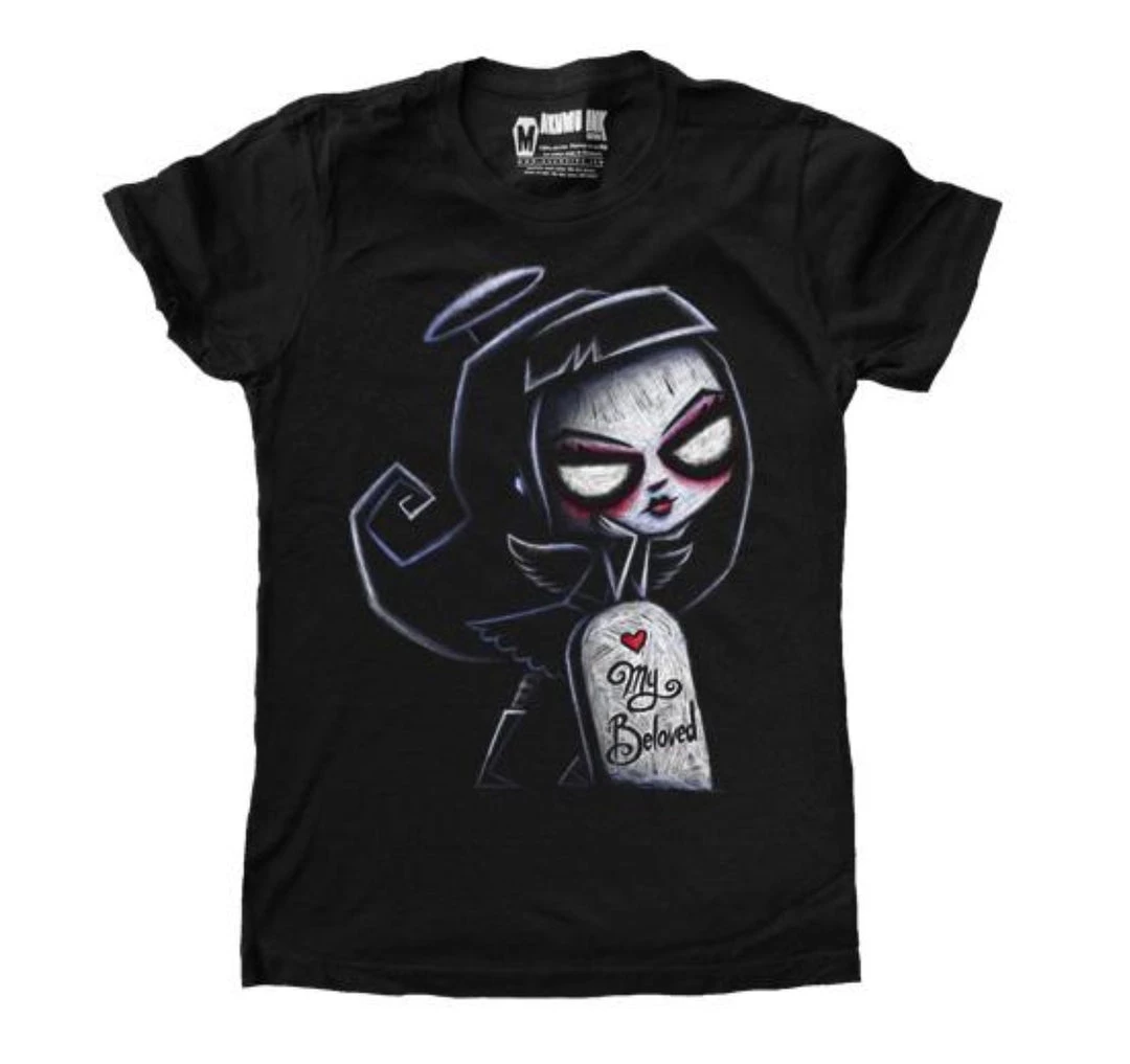 - Available in a women’s black 100% cotton scoop tee.