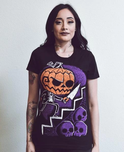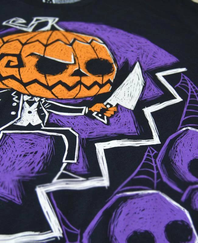 This short sleeve Akumu Ink crewneck features hand-drawn artwork of a masked serial killer who, unbeknownst to him, wasn’t the first killer to pay a visit.