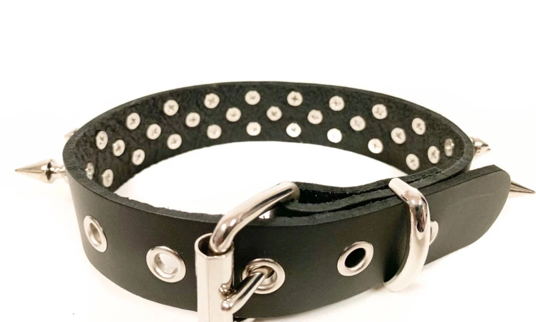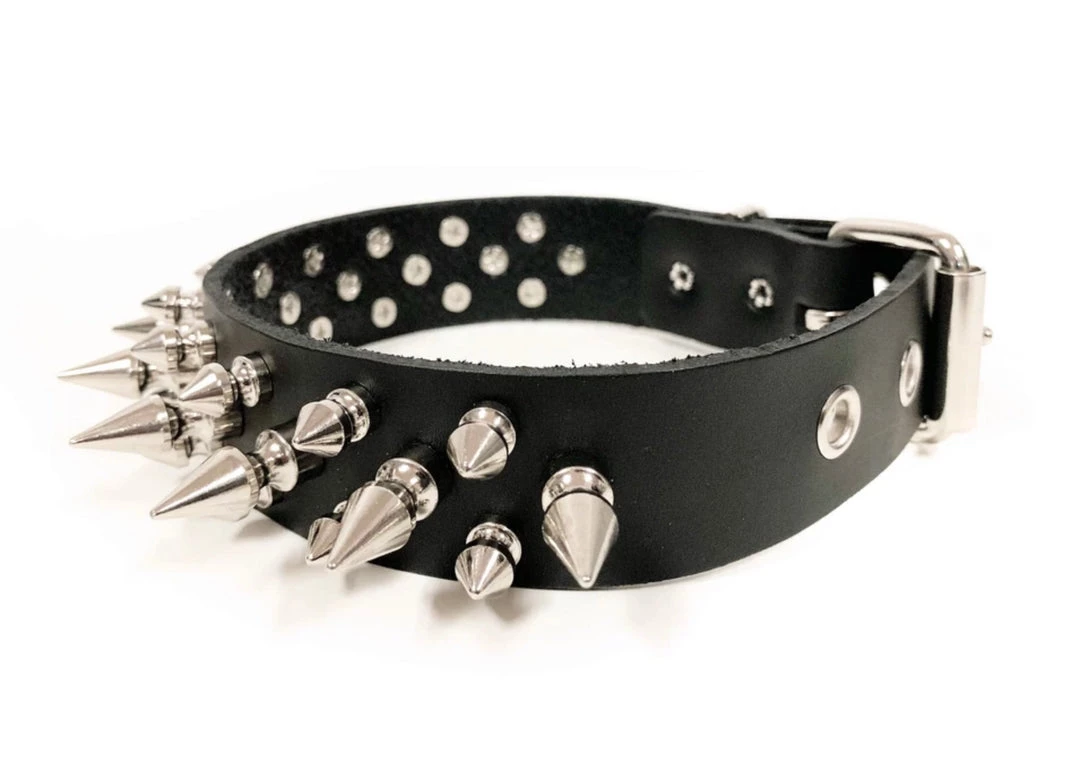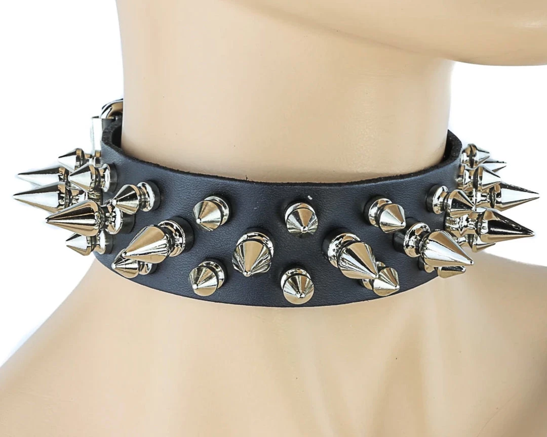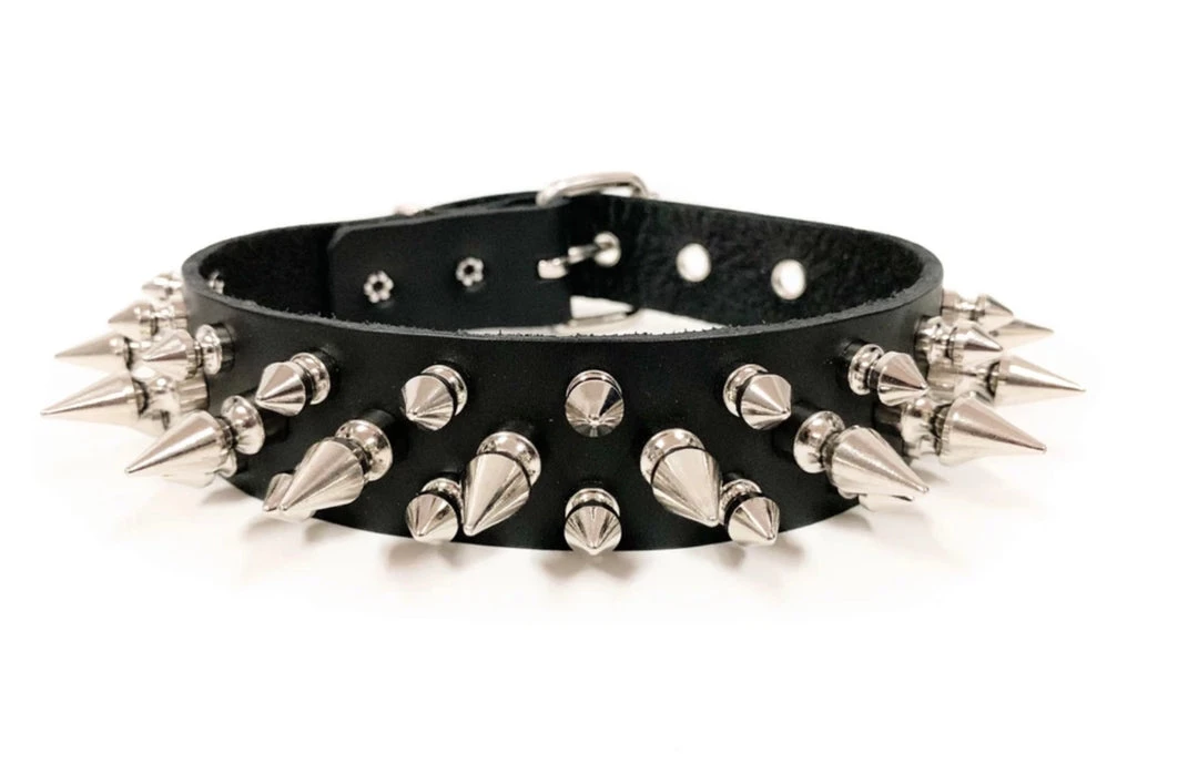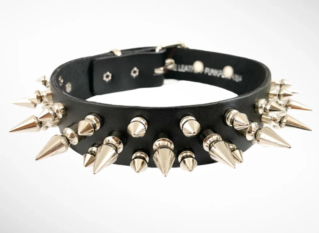 Funk Plus Chokers And Collars 1 1/8″ BLACK LEATHER CHOKER WITH 1/2″ & 1″ SPIKES