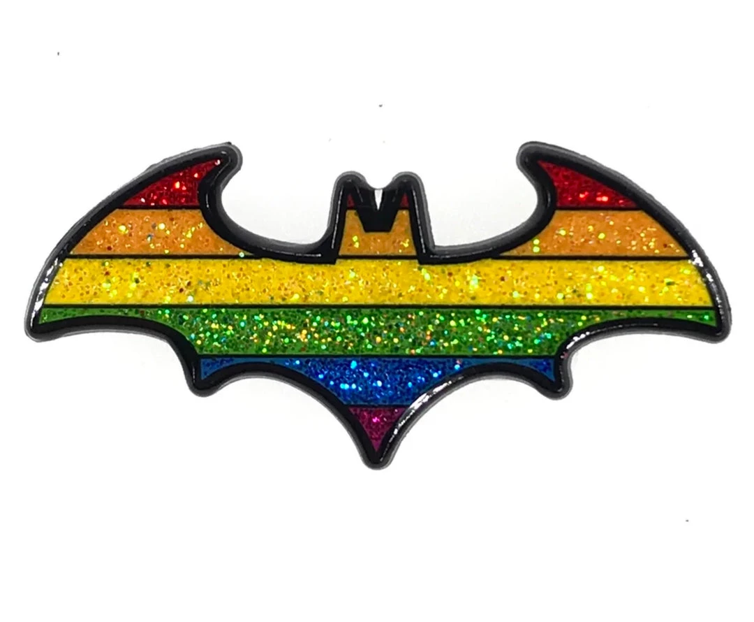 2″ soft enamel glitter pin with epoxy fill and 2 backing nails.