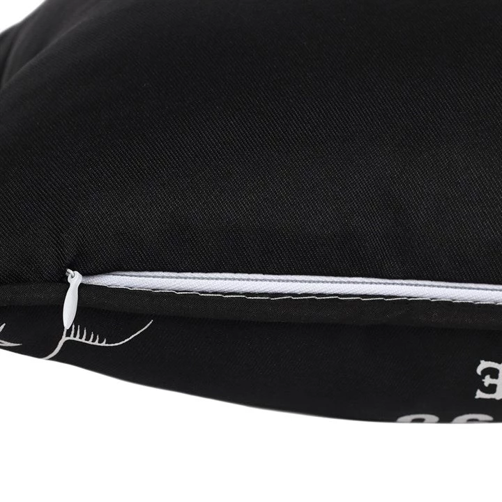This lovely rectangular fabric cushion is black in color with a white ouija talking board design. Zip closure so inner can be removed.