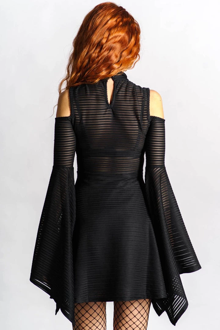 Put the fun in fun-eral with the ‘Between The Lines’ skater dress. Channeling a devilish vibe with its figure-hugging fit, constructed of super soft fabric for ultimate feel + comfort. With a high neck, statement sleeves, hanky hem and cold shoulders. Fits like a glove – purrfect for date night, parties or just yer daily/nightly adventures.