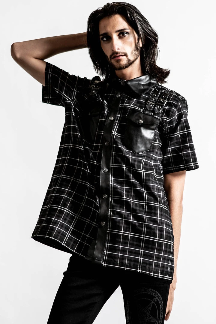 Channel your inner weirdo with our ‘Daze’ button-up shirt. Features a smart button-up front, bold straps with buckles and a tartan design- the perfect mix of smart and magick.