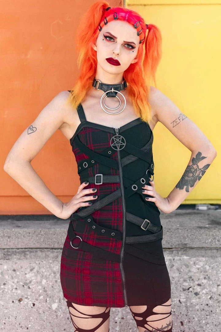 Killstar Women’s Stuff Bury Me Bondage Dress [TARTAN]