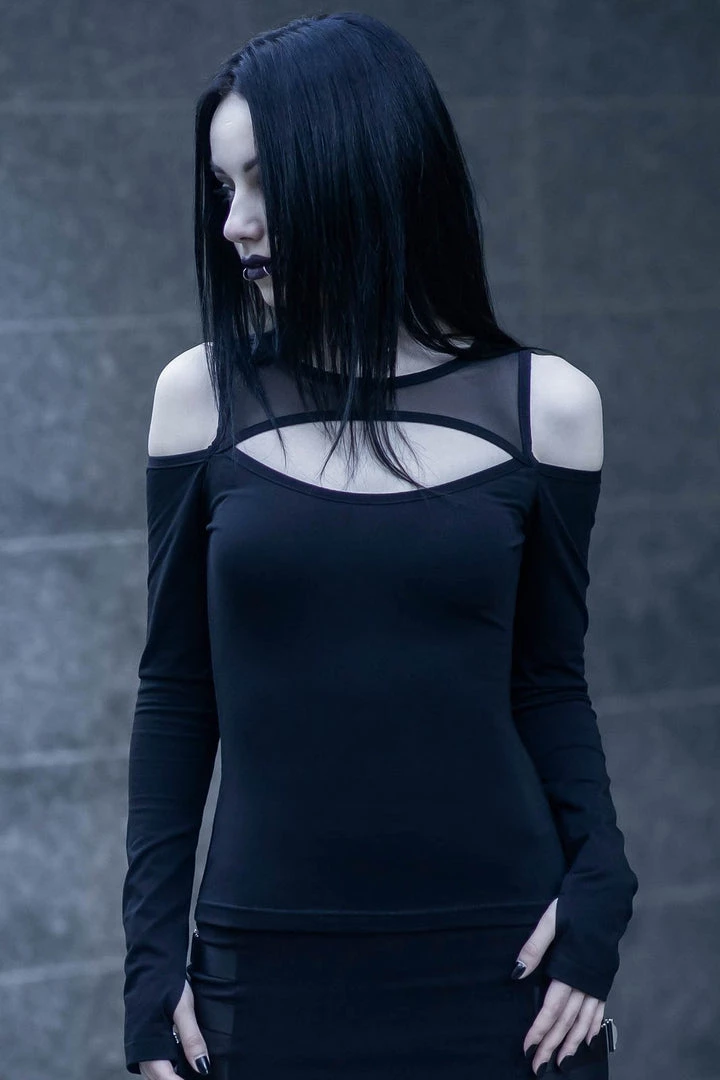 Elevate your thinking and levitate to a new level. The ‘Seraphim’ long-sleeve top is a must-have wardrobe staple, constructed of stretchy jersey and light mesh-fabric for a flattering and comfortable fit. Complete with round neckline, keyhole chest statement, and cold shoulders. Extra long-sleeves with thumb-hole detailing. Easy to dress up or down depending on your mood/moon.