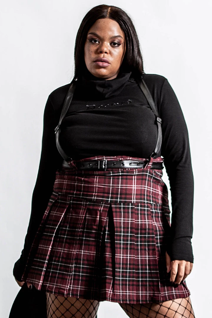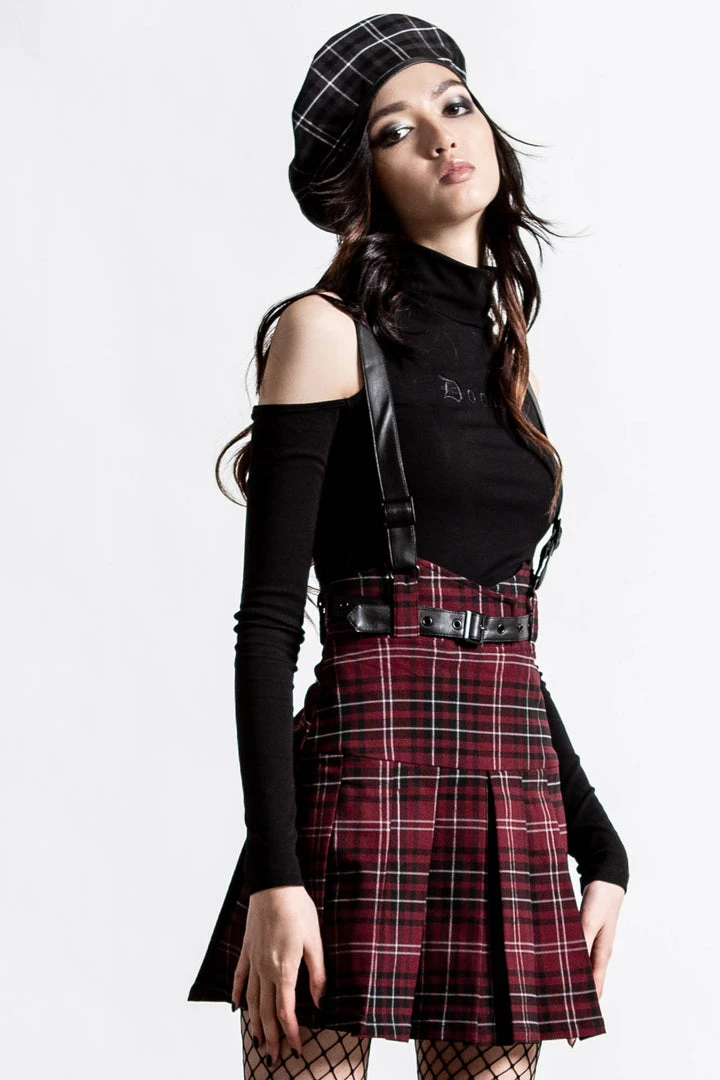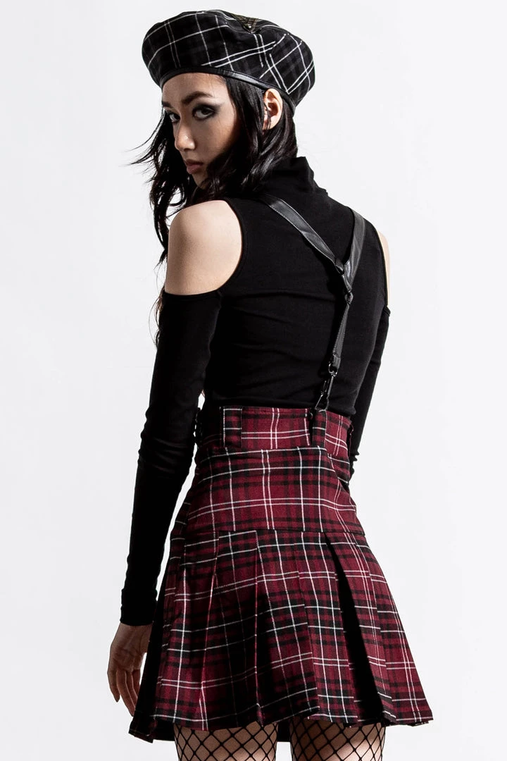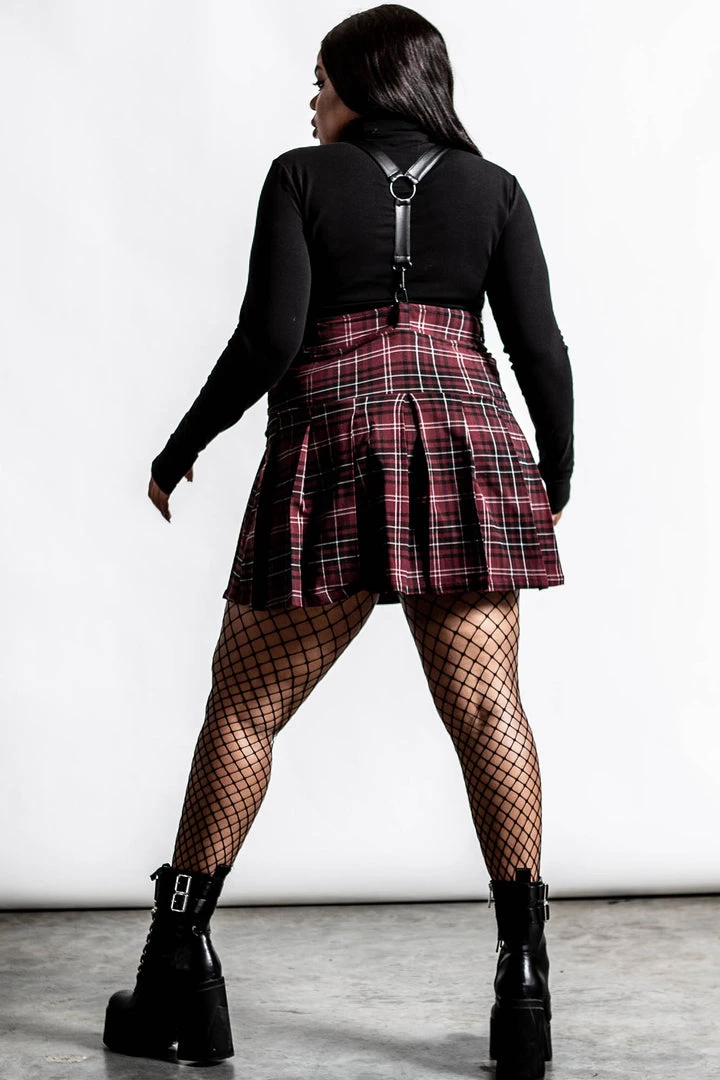 Killstar Women’s Stuff Shadows Suspender Mini Skirt [BLOOD TARTAN]