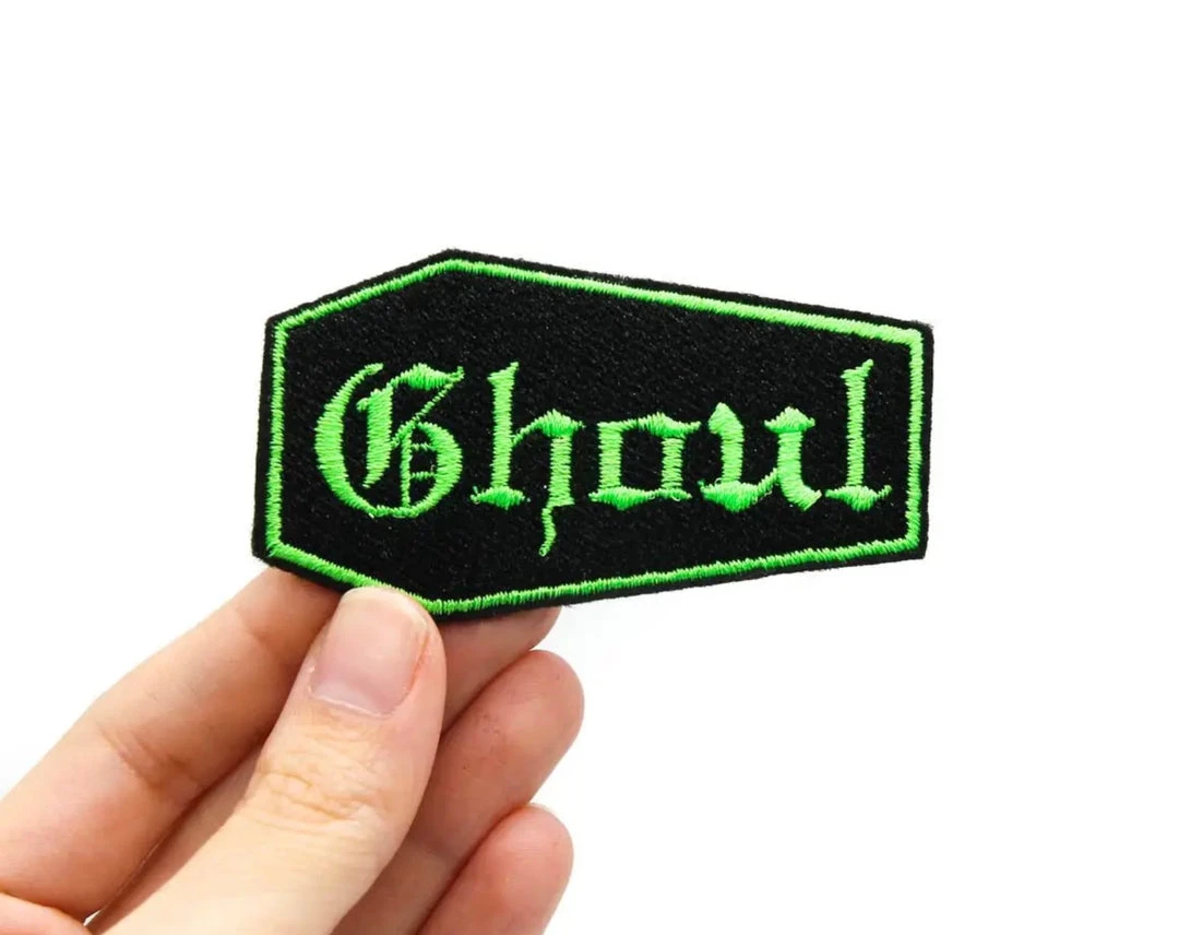Gothic Coffin Ghoul Embroidered Iron On Patch – Black And Green