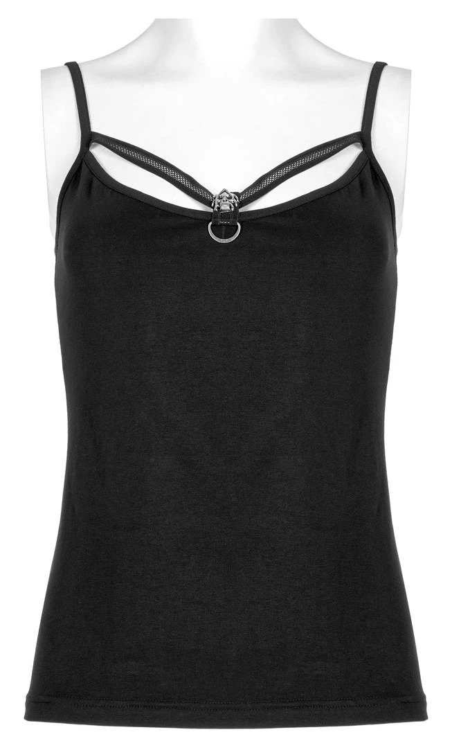 Black camisole tank top from Punk Rave. Soft elastic knitted fabric featuring a skull accent on the front, and adjustable shoulder straps.