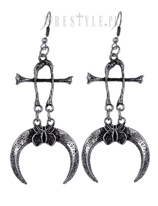 Antique silver earrings tibia bones, moon, Occult jewellery “CLAWS & BONES SILVER EARRINGS”