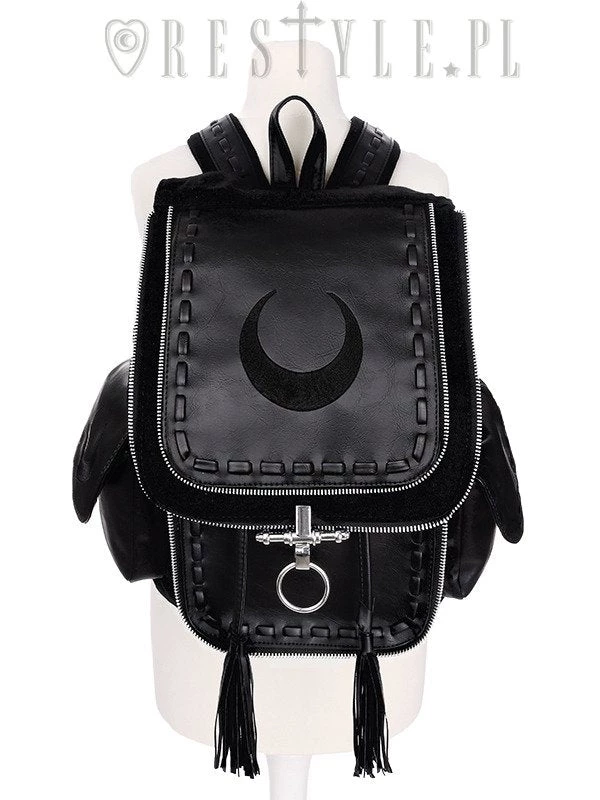 Black School bag, with pockets 90s backpack moon bag “CRESCENT BLACK BACKPACK”