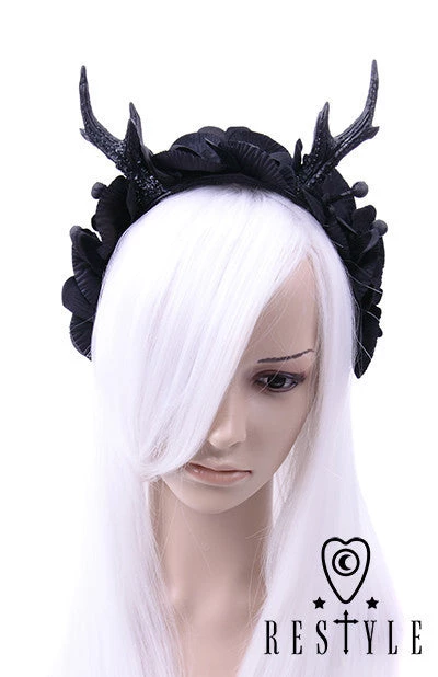 Gothic hairpiece with antlers. The wide headband adorned with black deer antlers. Horns are made of very durable material. They are very firmly attached to the headband.