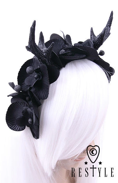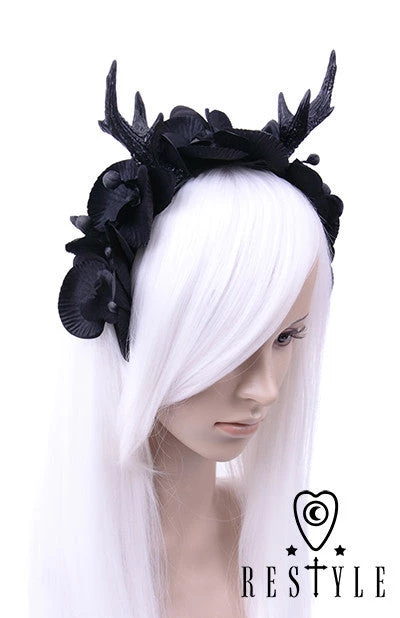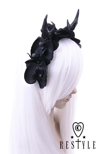 Headband is also adorned with eight, black orchids and unbloomed flower buds. Perfect accesory for every gothic or alternative style.