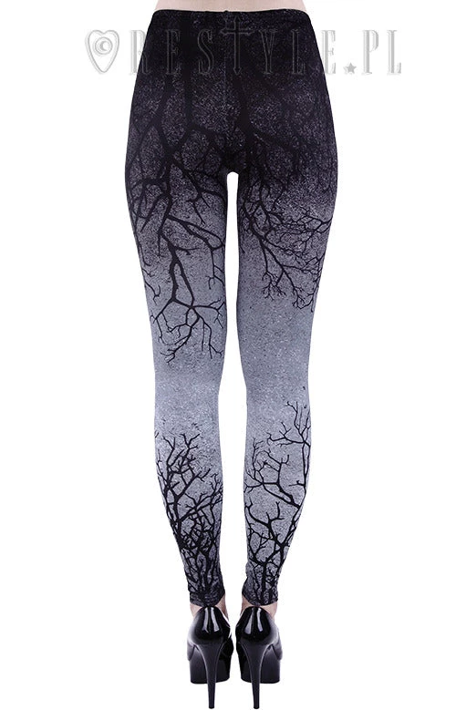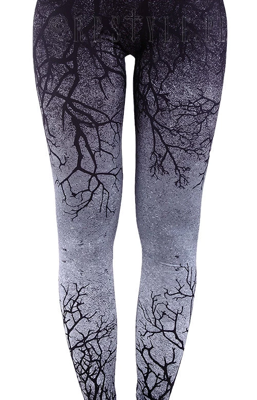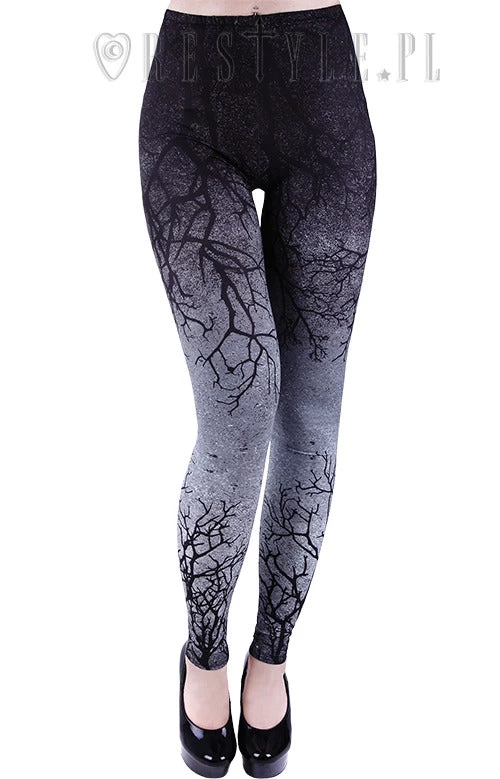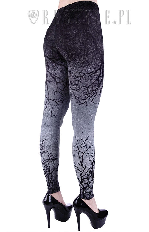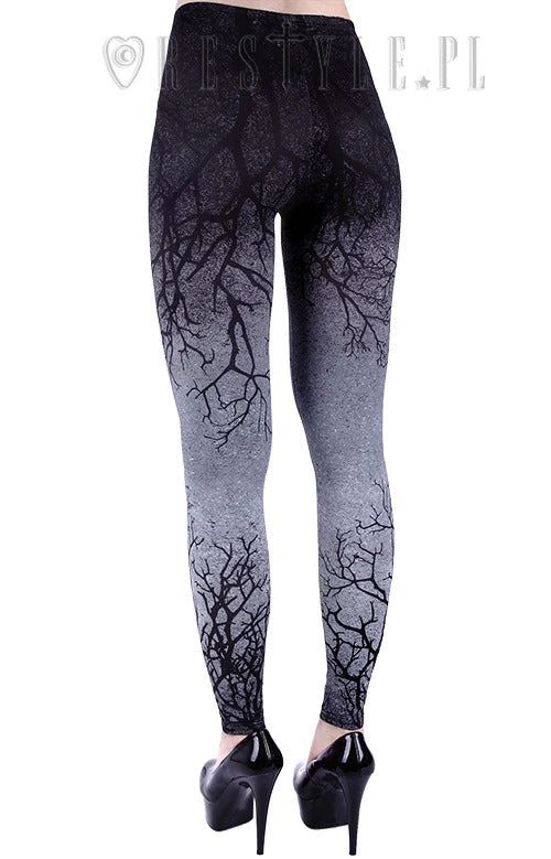 Leggings with printed tree branches on gradient background. Made of stretchy, very soft fabric, perfectly fit to the body (92% polyester, 8% spandex).