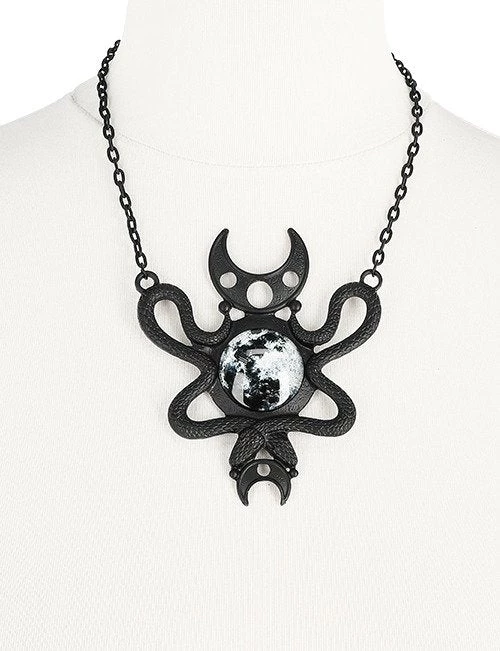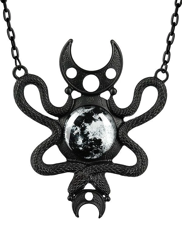 This amulet is with black full moon with two snakes entangling. Above and below there are openwork crescents.