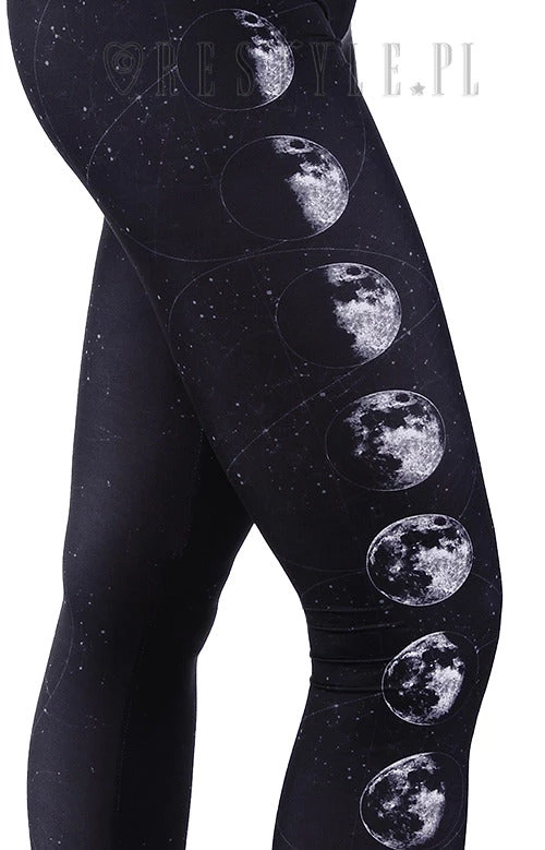 Leggings with Moon Phases and Map of the Stars print! Graphic is placed on the side of a leggings. Made of stretchy, very soft fabric, perfectly fit to the body (92% polyester, 8% spandex).