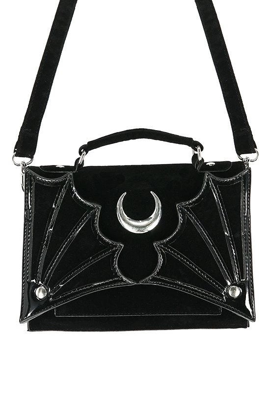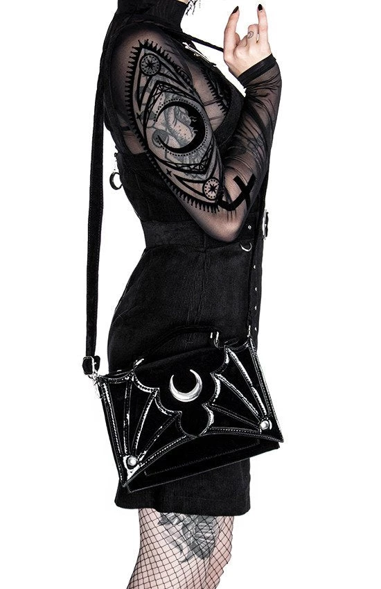 SMALL BAT BAG Gothic crossbody handbag with bat wings and moon