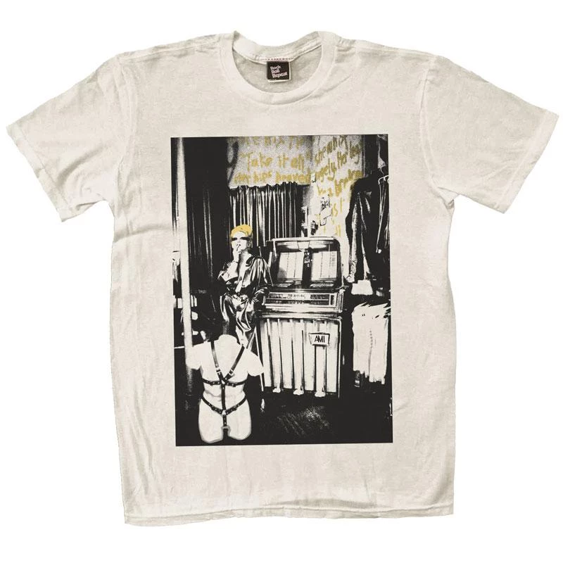 Softhand print on vintage white, sweatshop-free tees, featuring Sheila Rock’s portrait of style icon Jordan Mooney, at work as the face of Malcolm McLaren and Vivienne Westwood’s SEX, and Seditionaries, the shops at the epicenter of British punk and punk fashion.