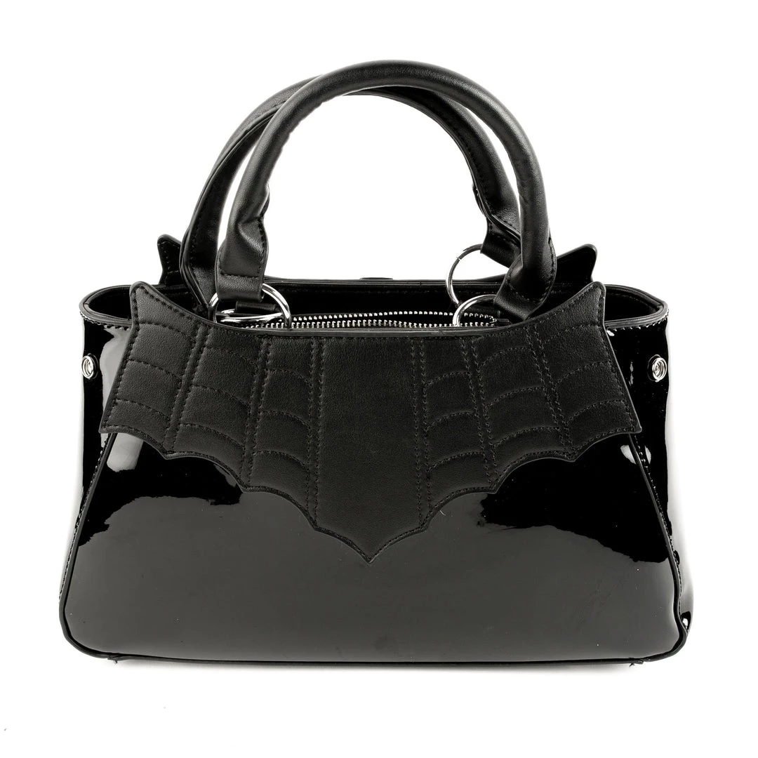 Just like little black dresses, you can never have too many little black purses! The new Black Locked Out Purse is our latest, and we’re in love! The shell has is comprised of glossy black faux leather, with matte leather stitched spiderweb details. It has a zip closure, inner pockets and little metal feet so you never have to worry about it falling over!